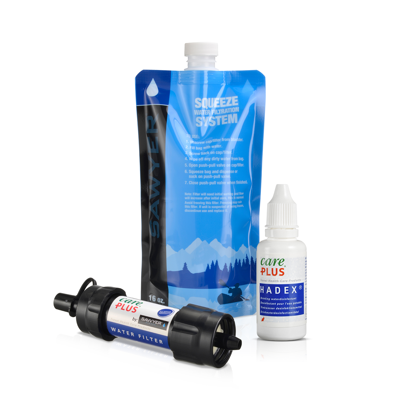 Auf Reisen ist es wichtig, dass du auf die Hygiene achtest. Manchmal ist kein Wasser verfügbar oder die Qualität ist anders, als man es zu Hause gewohnt ist. Wir empfehlen dir, immer ein desinfizierendes Handgel, Seife und Körperspray dabei zu haben, damit du dich sauber und frisch fühlen kannst. Für einige Reiseziele empfehlen wir einen Wasserfilter und/oder ein Trinkwasserdesinfektionsmittel. Care Plus® bietet dir eine komplette Palette an Produkten, die die Hygiene während deiner Reise verbessern.