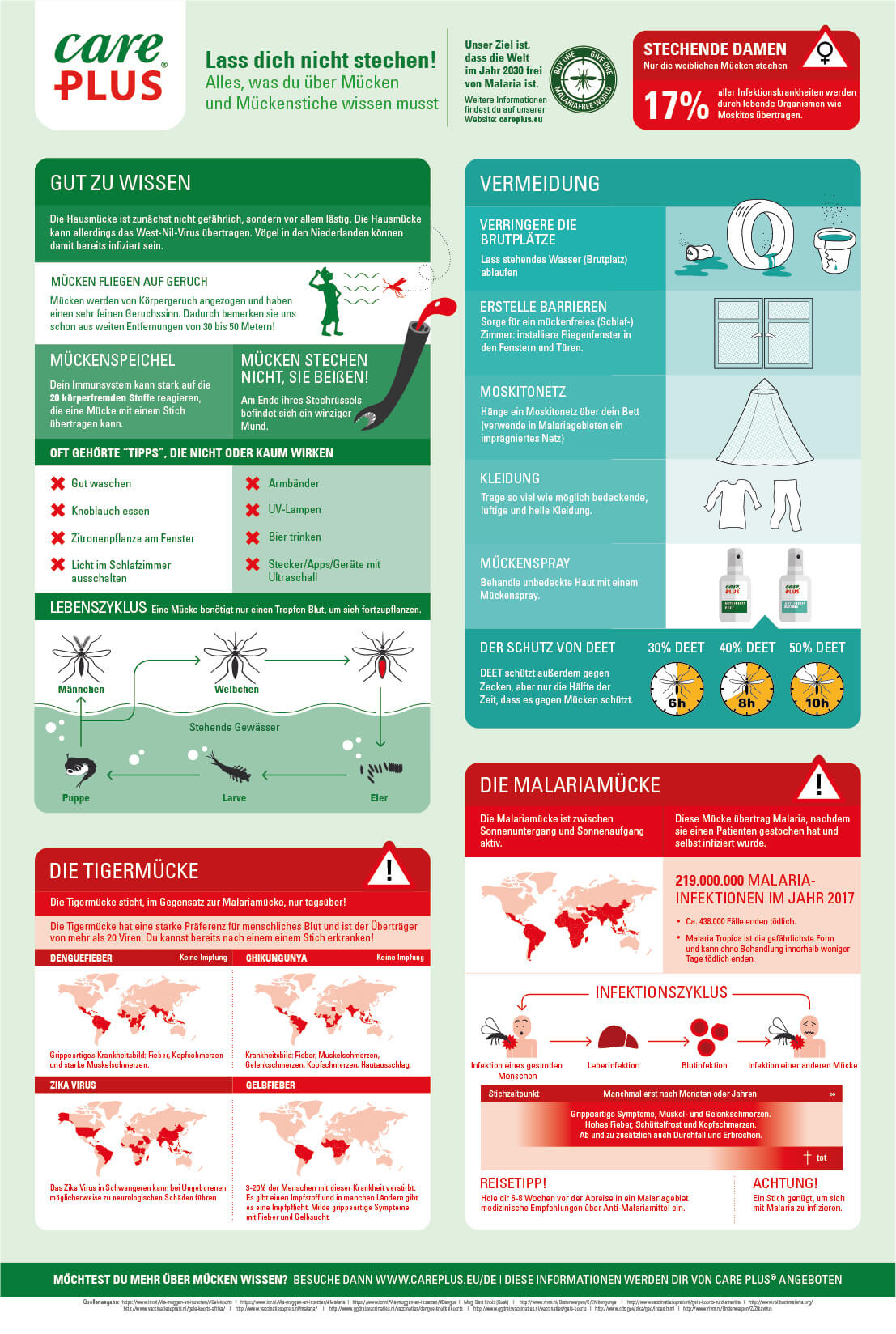 Mücken und Zecken können lästige Stiche und Bisse verursachen. Obwohl die Stiche einiger Mückenarten und manche Zeckenbisse nicht schmerzhaft sind und man sie manchmal nicht einmal spürt, können sie Bakterien, Parasiten und Viren übertragen. Die Moskitos in Europa, die dich mit einer Krankheit infizieren können, sind glücklicherweise wenige, aber natürlich nervt auch das irritierende Summen von Moskitos, wenn du schlafen gehst.