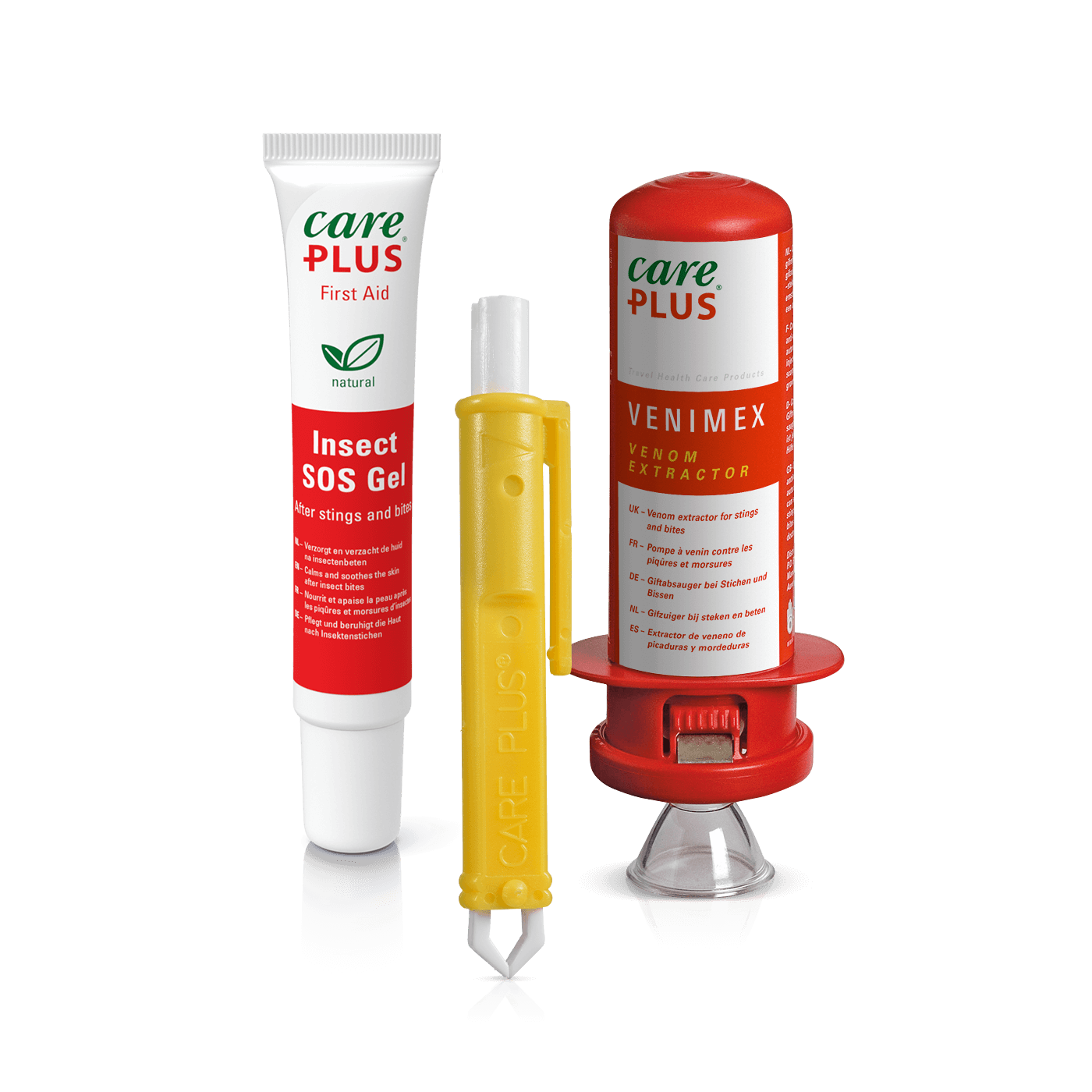 Care Plus® propose un set de produits pour les premiers secours en voyage, pour la prévention et le traitement des ampoules et pour l’élimination des tiques en toute sécurité.
